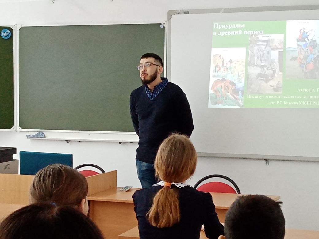 20 апреля 2022г в МБОУ СОШ с.Шулганово была организована встреча с научным сотрудником Института этнологических исследований им. Р. Г. Кузеева Уфимского НЦ РАН А.Т.Ахатовым . Альберт Тагирович выступил перед обучающимися на тему "Приуралье в древности" . Мероприятие было интересное, полезное, детям очень понравилось.