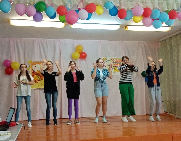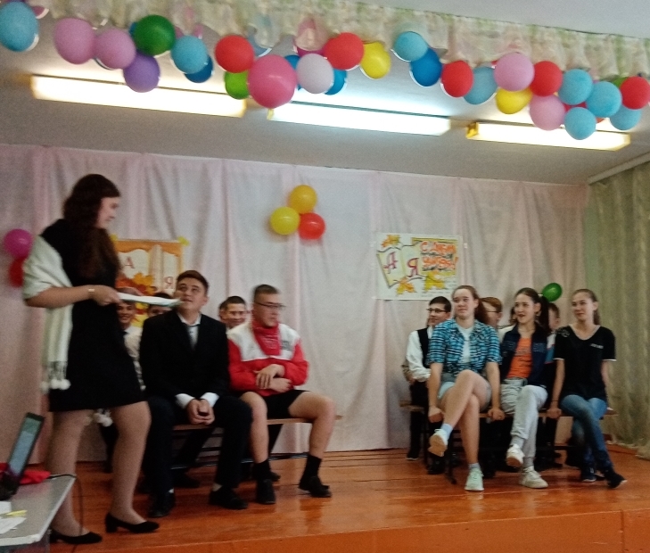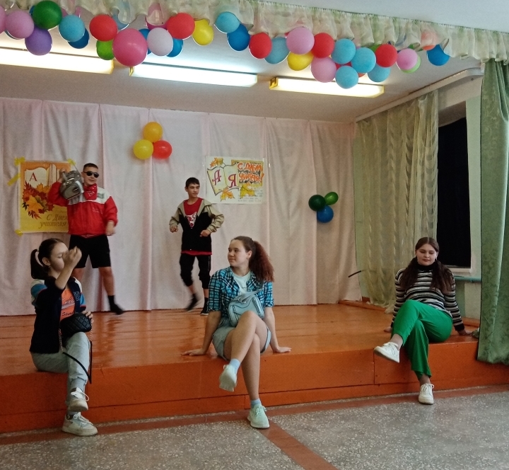 5 октября обучающиеся 9 класса (кл.руководитель Хаматшин Ю.Ю) поздравили с днем учителя педагогов школы. Они подготовили очень интересный сценарий и вернули учителей в СССР. Очень весело и приятно было вернуться в период нашей молодости. Огромное спасибо детям и Юниру Юзиковичу!