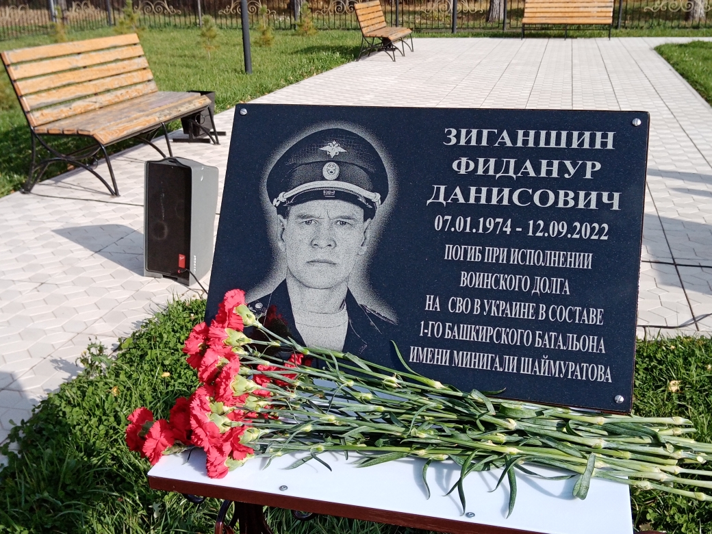 10 октября в парке Победы с.Шулганово было организовано открытие мемориальной доски Зиганшину Ф.Д., погибшему при исполнении воинского долга на СВО в Украине в составе 1-го Башкирского батальона им.М.Шаймуратова. Коллектив МБОУ СОШ с.Шулганово гордится тем, что в нашей школе учился настоящий герой, преданный Родине. Мы выражаем соболезнования родителям и родственникам Фиданура Данисовича.