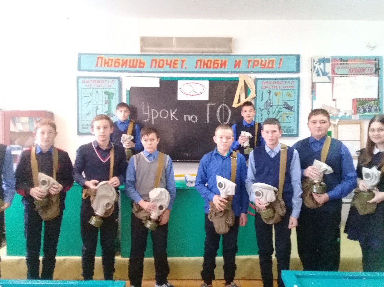 В рамках месячника по гражданской обороне учителем ОБЖ Хаматшиным Ю.Ю. был проведен урок в 9 классе.по теме «Индивидуальные средства защиты». Обучающие ознакомились с назначением и устройством противогаза ГП-5. Выполнили нормативы по одеванию противогаза.