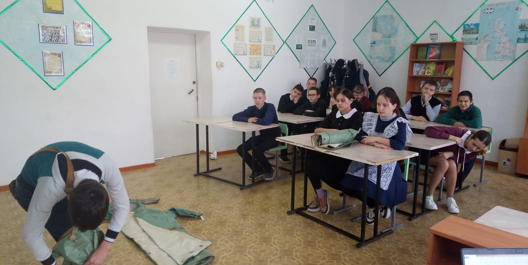 19 октября в рамках месячника гражданской обороны учитель ОБЖ Хаматшин Ю.Ю. провел урок по теме "ОЗК". Обучающиеся ознакомились с назначением, правилами одевания и снятия ОЗК,