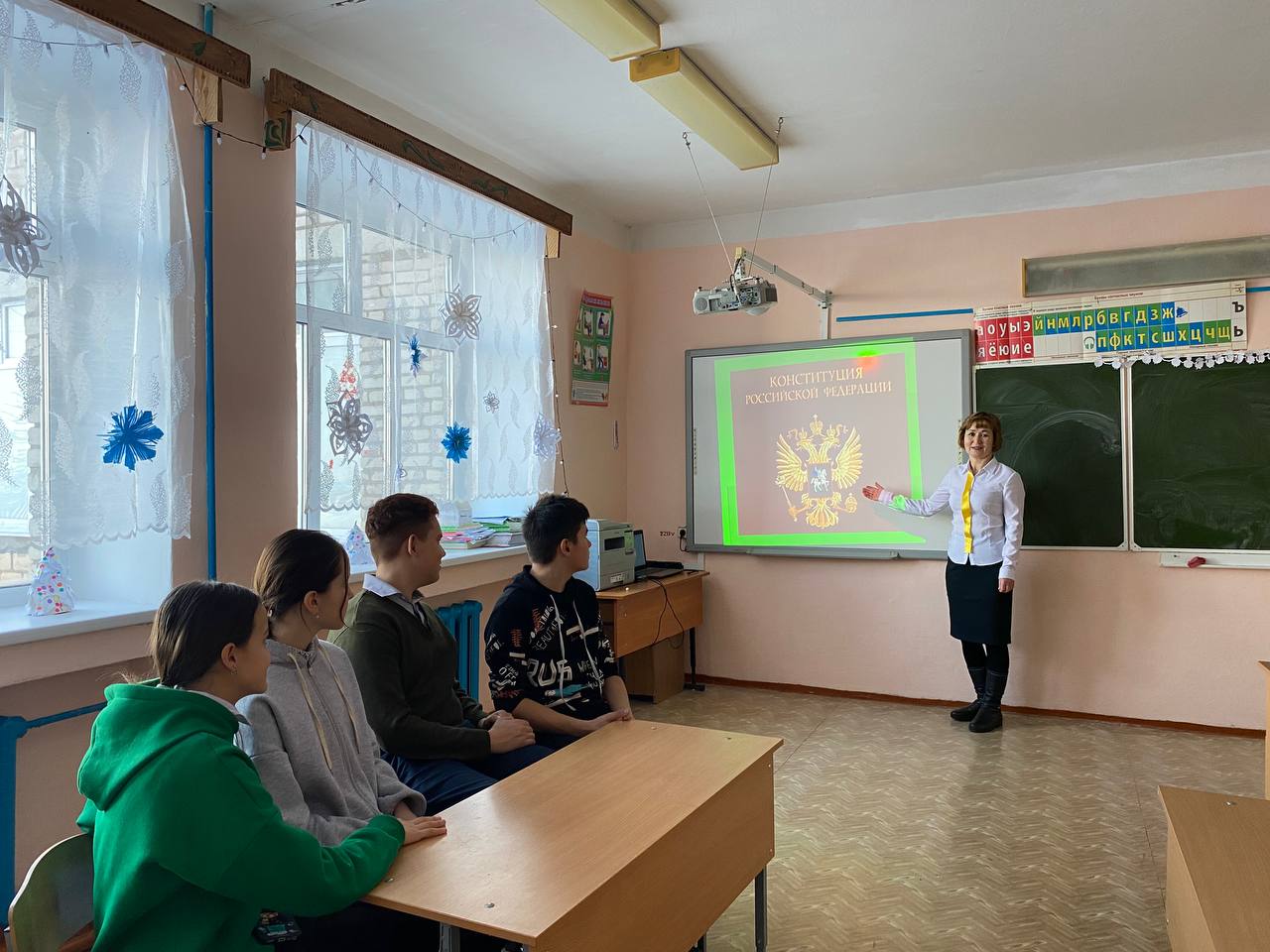 В рамках этой даты советник директора по воспитанию и взаимодействию с детскими общественными объединениями МБОУСОШ с.Шулганово Загитова Е.Х. совместно с учителем истории Шараповой З.А. провели в 8,11 классах интеллектуальная игру «Что мы знаем о конституции?». Пройдя 3 тура и набрав 900 очков, обучающиеся 11 класса стали победителями. Молодцы!!!