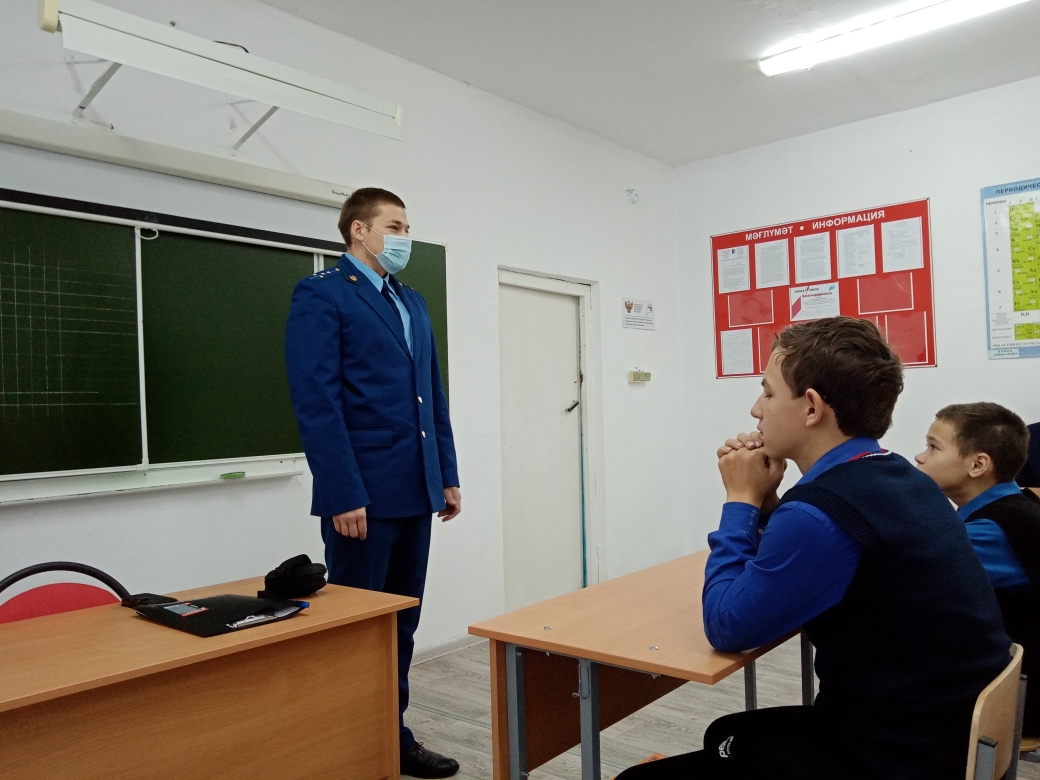 Русаков А.Н. рассказал обучающимся об их правах и обязанностях, о нормах нравственного поведения, о том, как разрешить конфликты мирным путем и куда обратиться в трудной жизненной ситуации. Также в доступной форме обучающиеся узнали о статьях закона, касающихся ответственности несовершеннолетних за совершение различных преступлений, о наиболее частых причинах совершения преступлений. Антон Николаевич довел до сведения обучающихся информацию о предусмотренных законодательством и принимаемых органами государственной власти и местного самоуправления мерах по профилактике противодействия терроризму. Ребята были проинформированы о роли и предназначении правоохранительных органов, об особенностях работы органов прокуратуры, о возможности получения юридического образования.
