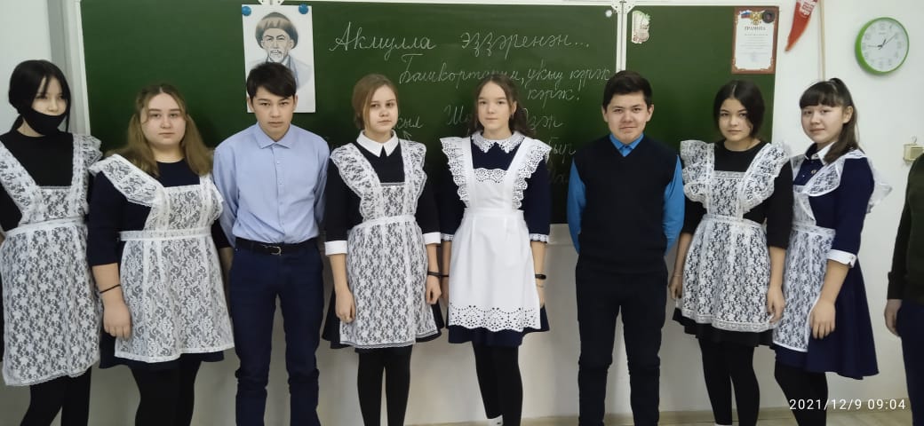Шүлгән урта мәктәбенең 9 класында башҡорт теле һәм әҙәбиәте уҡытыусыһы Г. Усманова тарафынан "М.Аҡмулла эҙҙәренән..." тип аталған дәрес үткәрелде. Унда уҡыусылар бөйөк аҡыл эйәһенең тормош юлы һәм ижадына байҡау яһанылар, викторина, кроссворд эшләнеләр. Шиғырҙарын тасуири уҡыу ойошторолдо, ә "Нәсихәттәр" шиғырына тулы анализ яһалды. Аҙаҡ "Карауанһарай" төркөмө башҡарыуында шағирҙың шиғырҙарына яҙылған йырҙар тыңланылар