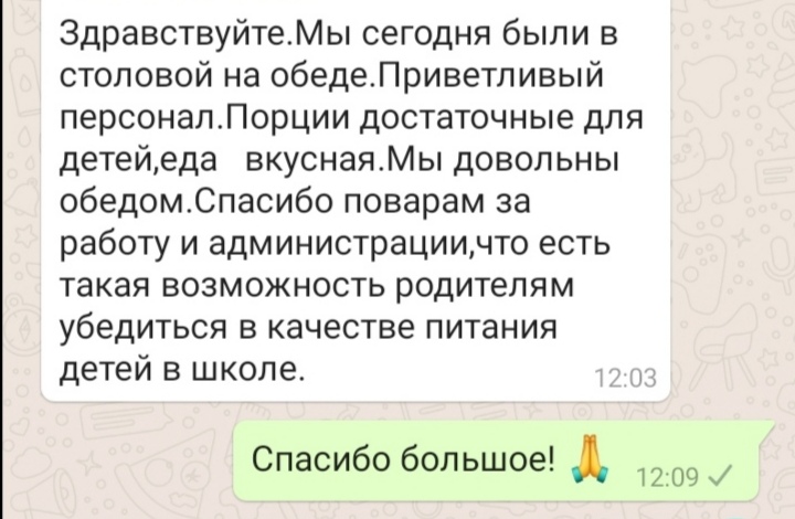 Администрация школы благодарит родительский комитет за доброжелательное отношение , поваров-за вкусную качественную еду.