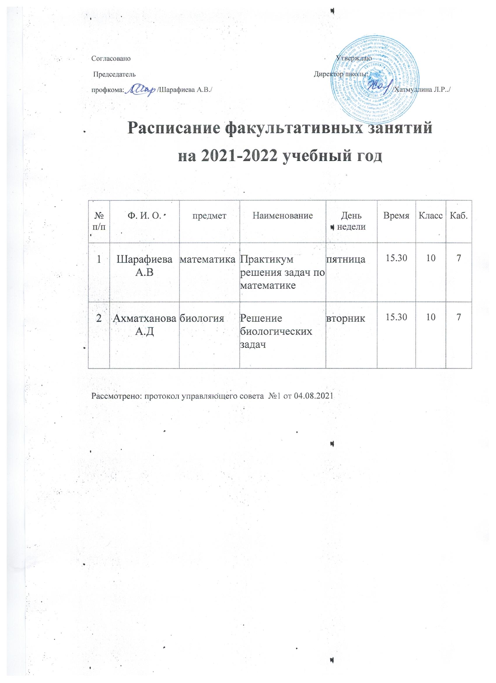 Расписание факультативных занятий