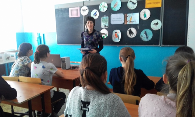 3 апреля в МБОУ СОШ с.Шулганово в рамках недели биологии,географии и истории учитель биологии и химии Ахматханова А.Д. провела День птиц в 7 классе. Алина Димовна показала презентацию о птицах, провела викторину. Мероприятие очень понравилось детям.