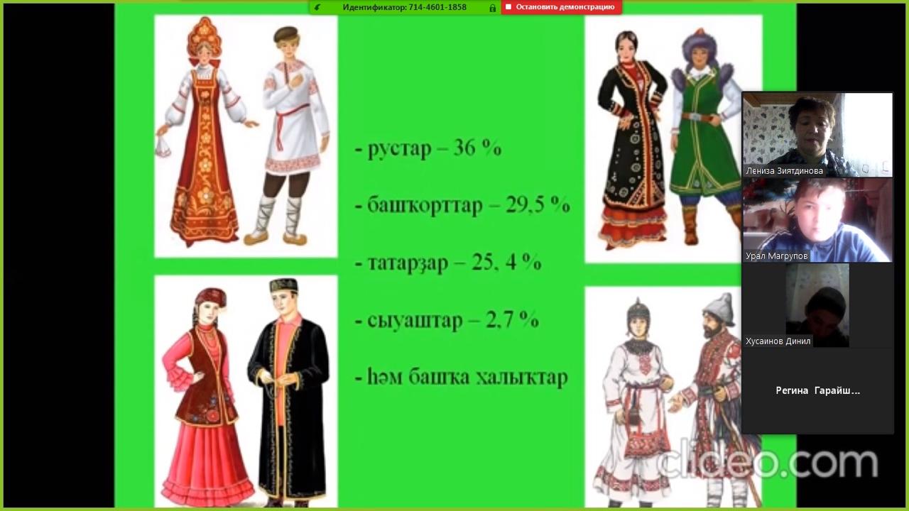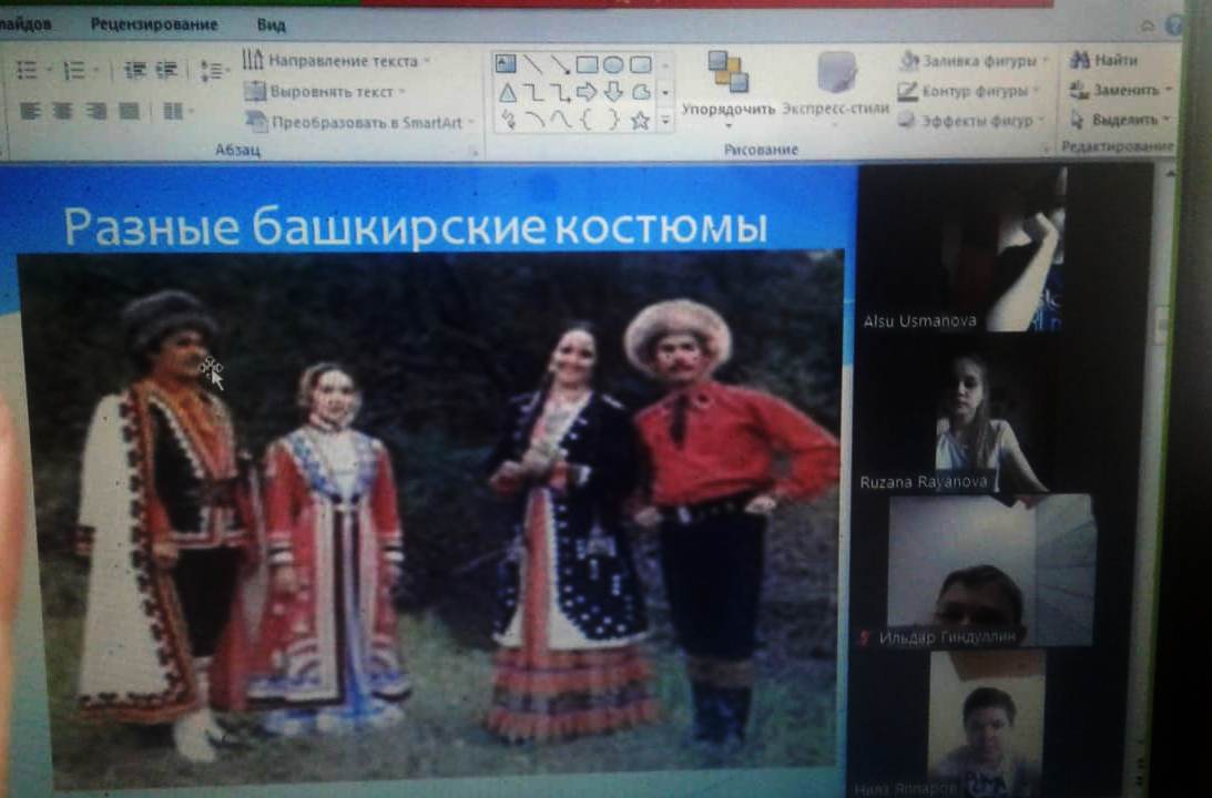 "Во втором классе прошел онлайн урок ко Дню народного костюма.Рассказала о национальном костюме народов республики.Основной упор был сделано на башкирский традиционный костюм с показом всех атрибутов женской,мужской ,детской одежды.Также детям был показан видеоролик,где транслироваться праздник "Чишма байрам",проходивший в с.Шулганово в национальных костюмах с национальными предметами обихода"(кл.рук-ль 2 кл.Суфиярова К.И.)