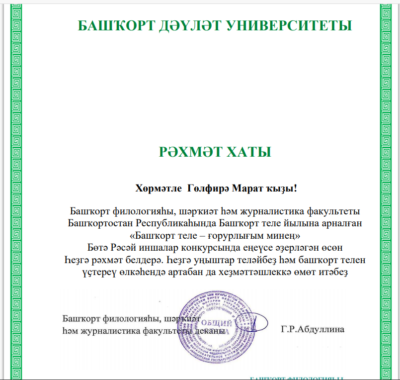 Поздравляем призера Всероссийского конкурса сочинений «Башҡорт теле – ғорурлығым минең»